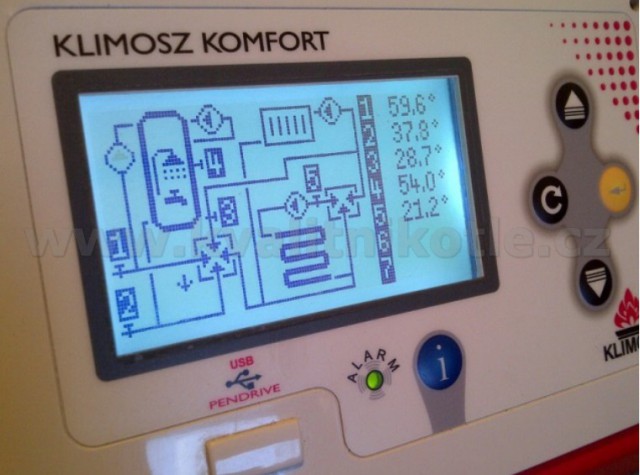 - regulaltor plně řídí nejen kotel, ale topný systém (čerpadla, ventily, pohony na ventilech, pokojové termostaty atd ..) - Klimosz COMFORT;
