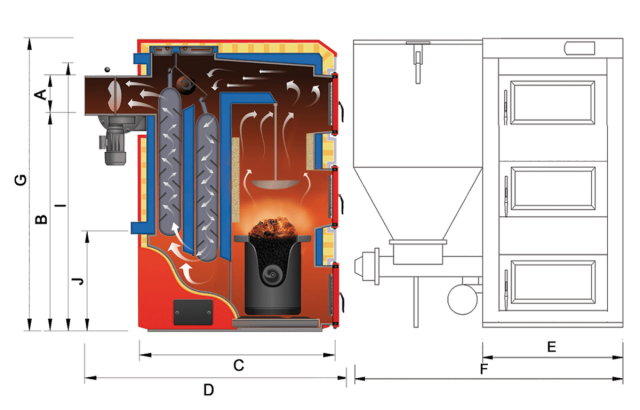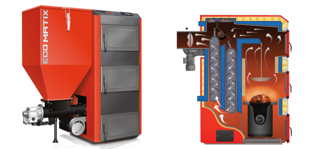 Eco Matix je kotel více dobový se zásobníkem a automatickým podavačem paliva. Zhotovený na spalování uhlí v podobě hrášku, granulí 5-25mm, palivo se spaluje vespeciálním retortovém hořáku za pomoci ventilátoru. Kotel Eco Matix s podavačem se speciálním rozptýlením paliva umožnuje bezkouřové spalování, s nízkým emisním bodem a vysokou procentuální účinnosti 91,4-94,7%.