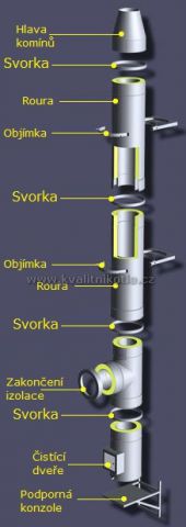 - Vnější a vnitřní stěny komínu jsou vyrobeny z ocelového plechu