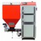 Na obrázku je zobrazen kotel s násypkou na levé straně.