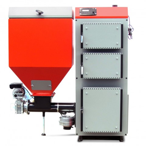 Automatický systém dávkování paliva - ekohrášku. Kotel je přizpůsoben pro provoz v otevřených systémech ústředního vytápění. Mikroprocesorový regulátor teploty řídí celý proces spalování, také práci čerpadel ústředního vytápění a teplé užitkové vody. Údržba kotle je omezena na doplnění paliva v zásobníku a odstraňování popela z kotle, stejně jako pravidelné čištění kanálů spalinových cest výměníku od sazí.