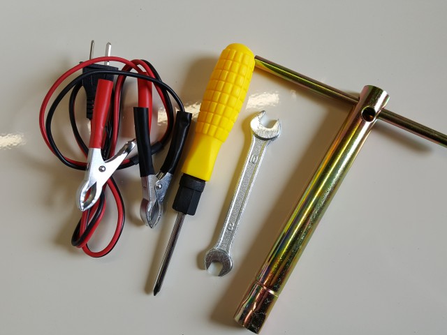 Příslušenství: Sada na dobijení akumulatorů , klíč na svíčku,šroubovák