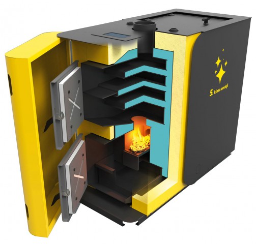 Konstrukce kotle také umožňuje pohodlné přikládání paliva a snadný přístup k ohništi hořáku, se kterým je zásobník integrován. Dveře spalovací komory a dvířka kotle jsou překryty designovým panelem. Kromě zvýšení estetiky zařízení usnadňuje udržování čistoty a poskytuje dodatečnou ochranu proti náhodnému dotyku ohřívaných dvířek. Systém polic v komoře přirozeně vynucuje prodlouženou recirkulaci spalinových plynů. Téměř veškerá energie je zachycena ve výměníku a promítá se do vysoké účinnosti kotle.