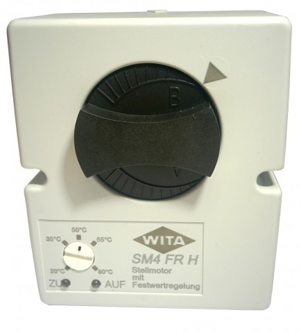 Regulátor SM 4 FR je určen pro udržování konstantní teploty nastavené hodnoty v celém vytápění nebo chlazení. Se zabudovaným pohonem ovládá tři nebo čtyřcestný směšovací ventil. Díky použití různých adaptérů, lze regulátor montovat jak na směšovací ventil Wita, stejně jako směšovací ventily jiných výrobců. Směr pohonu (doleva nebo doprava), aktivace konstantní průtok a teplotní limity provozu (vytápění nebo chlazení systému) lze nastavit pomocí tří "skokanů", se nachází pod krytem regulátoru. Dvě LED diody na víku informací o aktuálním stavu pohonu (otevření / zavření).