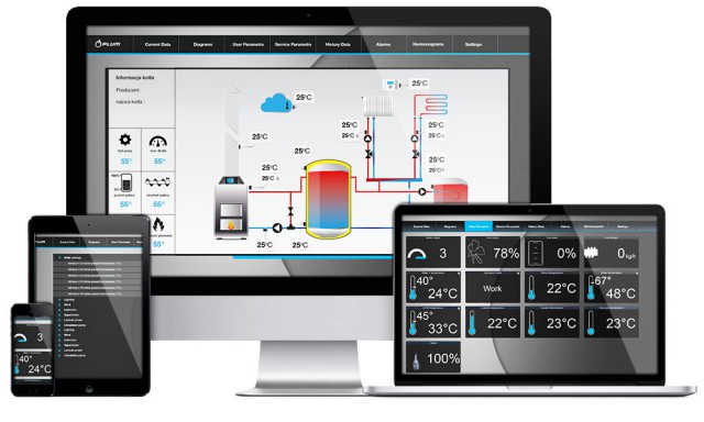 schopnost vzdáleně ovládat parametry kotle přes internet