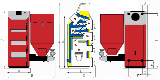 - Plně automatický kotel bez možnosti ručního topení- Horizontální výměník kotle umožňuje velice jednoduché čištění- 45°vývod kouřovodu z kotle umožňuje instalaci ve svislé nebo vodorovné poloze- Kotel je vyroben z certifikované, kotlové oceli o tloušťce 6 mm- Hořák kotle je vyroben z litiny