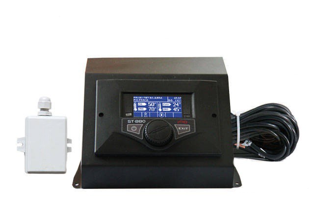 • regulátor je přizpůsoben pro montáž do pláště kotle nebo dodávaný v plechové skříňce pro montáž na kotli