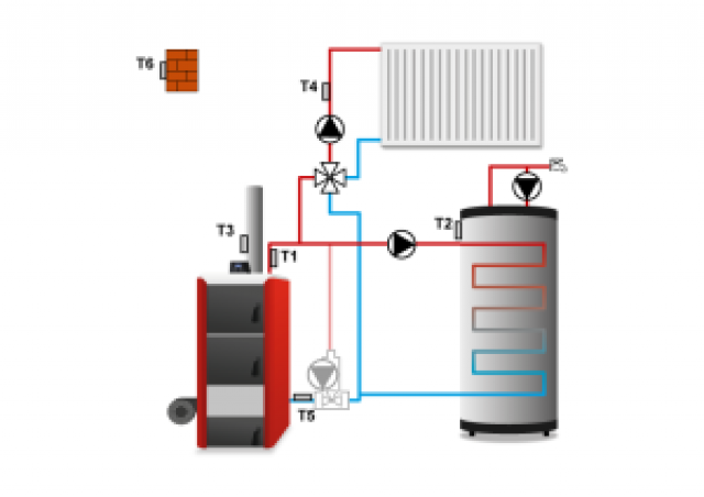 Regulátor pro zásypový kotel s ovládáním směšovacího ventilu