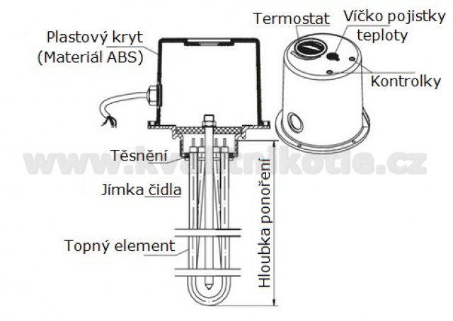 Celková délka topného tělesa s termostatem: 440mm