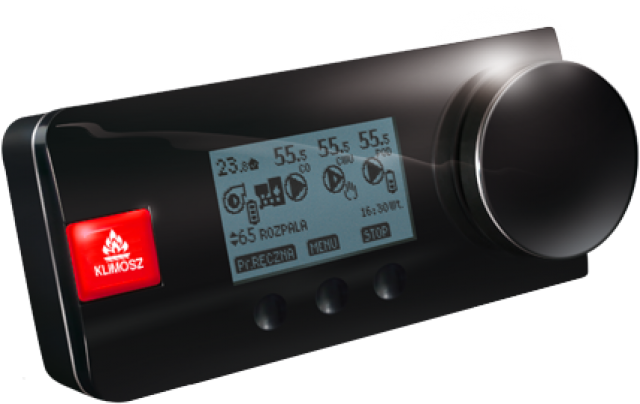 Regulátor Klimosz EcoControl je určen pro ovládání šnekového podavače, dmychadla, oběhového čerpadla UT, nabíjecího čerpadla TUV a čtyřcestného ventilu. Regulátor udržuje požadovanou teplotu domu pomocí bezdrátového pokojového panelu podle časového programu. Regulátor dynamicky upravuje množství přiváděného paliva a výkon dmychadla, zcela automaticky. Má funkci funkce „anti-stop“ a antibakteriální ochranu. Regulátor může realizovat prioritu užitkové teplé vody a chrání bojler a radiátory před ochlazením příliš studennou vodou z kotle. Řídicí jednotka rozděluje výkon kotle mezi UT a TUV dynamickým způsobem, s ohledem na nastavení uživatelských preferencí. Uživatel má možnost používat časové programy, které zajišťují optimalizaci spotřeby energie. Snímač zpátečky kotle zabraňuje před nízkou teplotou vratné vody.