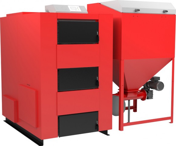 zejména pro tlaková zařízení. Tloušťka vnitřního plechu kotlového tělesa je 8mm, 5 mm vnější list. Velká výhřevná plocha výměníku tepla pro vysokou účinnost a nízkou teplotou spalinových plynů  150 ° C při maximálním výkonu kotle. Osvědčená konstrukce výměníku tepla zajišťuje bezpečné, snadné použití a hospodárný provoz zařízení. Kotel se vyznačuje malými vnějšími rozměry (výška).