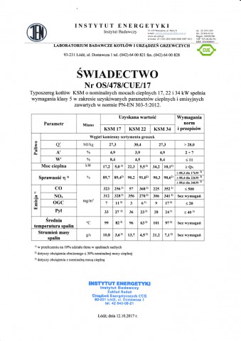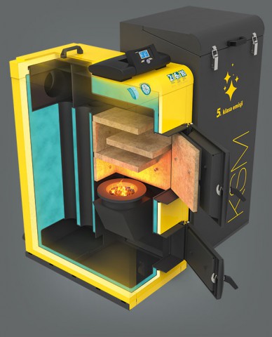 Kotel KSM je moderní kotle ústředního vytápění s retortovým podavačem PSR, ve kterém je spalováno základní palivo černé uhlí. Konstrukce uspořádání výměníku tepla s vertikálními spalinovými kanály má za následek vysokou účinnost zařízení až o 91%. KSM splňuje požadavky energie a emisní třídy 5 podle normy 303-5: 2012.